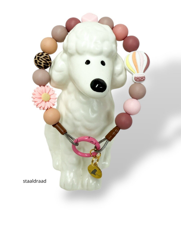 Zachte, neutrale tinten voor een hondenketting met een luxe uitstraling.