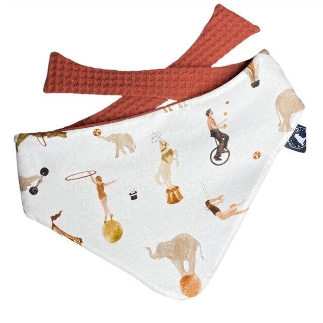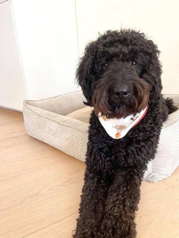 De knoopbandana, de naam zegt het al, knoop je zelf vast. Dus past altijd. Ook heel handig als je niet exact de maat van je hondje weet.