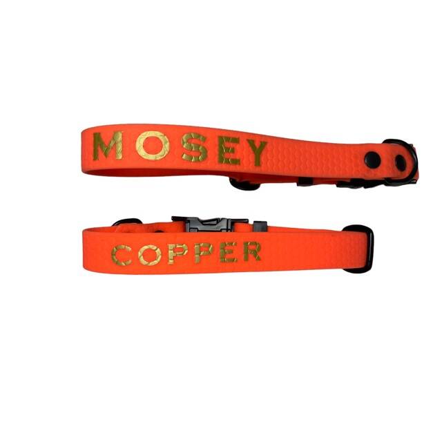 De halsband is gemaakt van hoogwaardige Biothane of pvc webbing.
